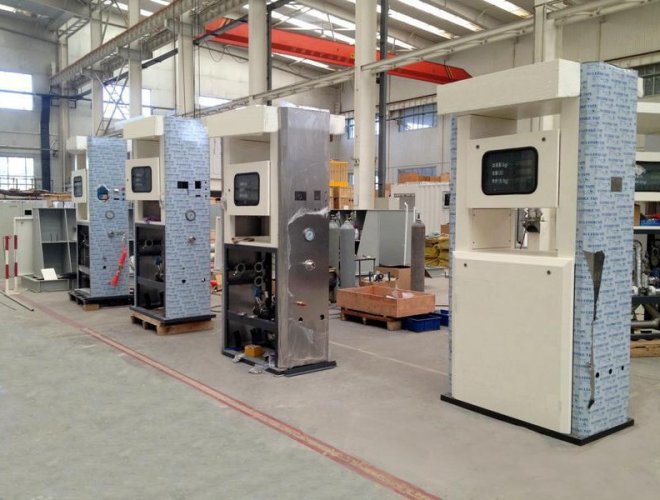 (7)加液機(jī)面板采用不銹鋼材質(zhì),包括所有必要的計(jì)量元件、閥門、安全裝置;加液機(jī)的操作面板和顯示安裝在機(jī)柜上,便于操作。